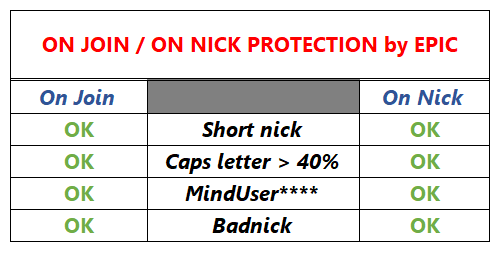 I plan to make a exceptednick.txt and write allowed nicks/masks.