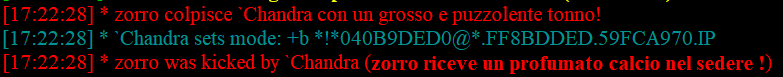 Пользователь под ником "zorro" не был забанен на "#random_channel" по причине того, что у него на этом канале установлен статус "Voice" (+).